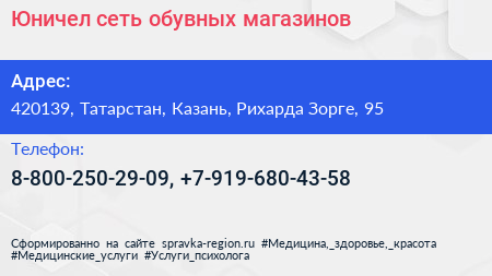 Юничел, сеть обувных магазинов по адресу 420139, Татарстан, Казань, Рихарда Зорге, 95 в дальнейшем Организация, размещена в следующих категориях: