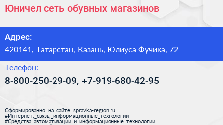 Юничел, сеть обувных магазинов по адресу 420141, Татарстан, Казань, Юлиуса Фучика, 72 в дальнейшем Организация, размещена в следующих категориях: