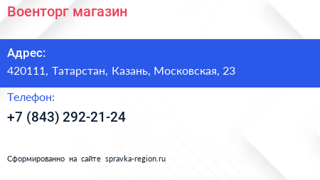 Военторг, магазин по адресу 420111, Татарстан, Казань, Московская, 23 в дальнейшем Организация, размещена в следующих категориях: