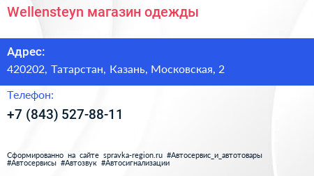 Wellensteyn, магазин одежды по адресу 420202, Татарстан, Казань, Московская, 2 в дальнейшем Организация, размещена в следующих категориях: