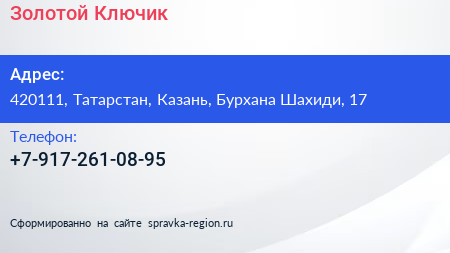 Золотой Ключик по адресу 420111, Татарстан, Казань, Бурхана Шахиди, 17 в дальнейшем Организация, размещена в следующих категориях: