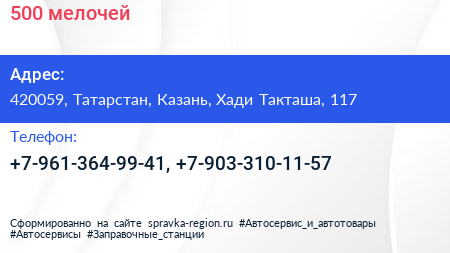 500 мелочей по адресу 420059, Татарстан, Казань, Хади Такташа, 117 в дальнейшем Организация, размещена в следующих категориях: