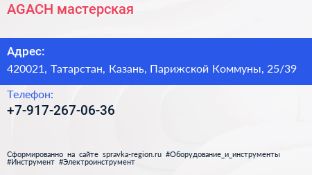 AGACH, мастерская по адресу 420021, Татарстан, Казань, Парижской Коммуны, 25/39 в дальнейшем Организация, размещена в следующих категориях: