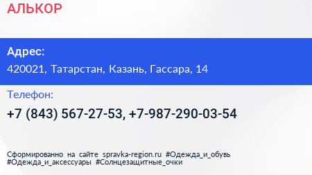 АЛЬКОР по адресу 420021, Татарстан, Казань, Гассара, 14 в дальнейшем Организация, размещена в следующих категориях: