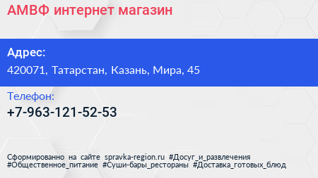 АМВФ, интернет-магазин по адресу 420071, Татарстан, Казань, Мира, 45 в дальнейшем Организация, размещена в следующих категориях: