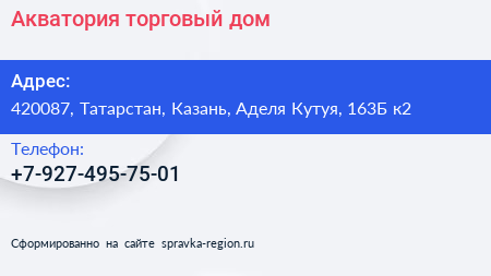 Акватория, торговый дом по адресу 420087, Татарстан, Казань, Аделя Кутуя, 163Б к2 в дальнейшем Организация, размещена в следующих категориях: