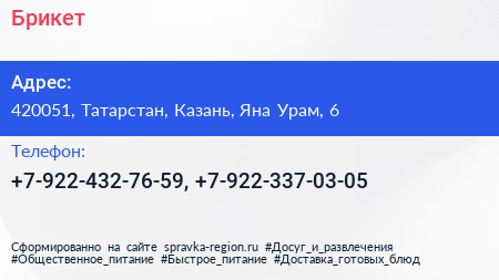 Брикет по адресу 420051, Татарстан, Казань, Яна Урам, 6 в дальнейшем Организация, размещена в следующих категориях:
