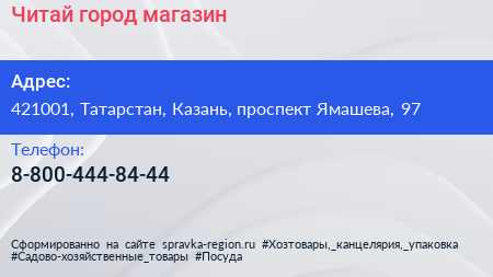 Читай-город, магазин по адресу 421001, Татарстан, Казань, проспект Ямашева, 97 в дальнейшем Организация, размещена в следующих категориях: