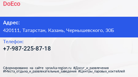 DoEco по адресу 420111, Татарстан, Казань, Чернышевского, 30Б в дальнейшем Организация, размещена в следующих категориях: