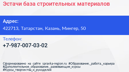 Эстачи, база строительных материалов по адресу 422713, Татарстан, Казань, Мингер, 50 в дальнейшем Организация, размещена в следующих категориях: