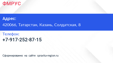 ФМРУС по адресу 420066, Татарстан, Казань, Солдатская, 8 в дальнейшем Организация, размещена в следующих категориях: