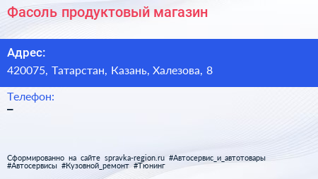 Фасоль, продуктовый магазин по адресу 420075, Татарстан, Казань, Халезова, 8 в дальнейшем Организация, размещена в следующих категориях:
