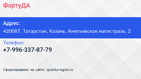 ФортуДА по адресу 420087, Татарстан, Казань, Аметьевская магистраль, 2 в дальнейшем Организация, размещена в следующих категориях:
