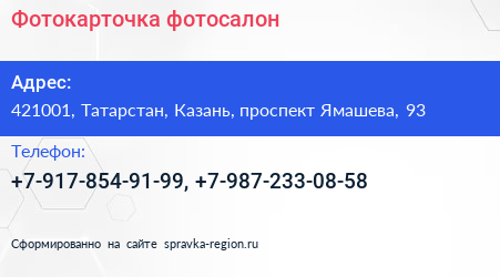 Фотокарточка, фотосалон по адресу 421001, Татарстан, Казань, проспект Ямашева, 93 в дальнейшем Организация, размещена в следующих категориях: