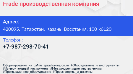 Frade, производственная компания по адресу 420095, Татарстан, Казань, Восстания, 100 к6120 в дальнейшем Организация, размещена в следующих категориях: