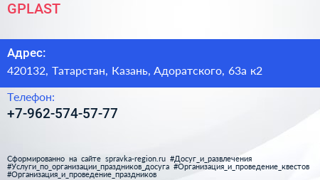 GPLAST по адресу 420132, Татарстан, Казань, Адоратского, 63а к2 в дальнейшем Организация, размещена в следующих категориях: