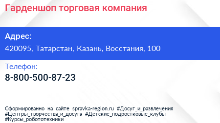 Гарденшоп, торговая компания по адресу 420095, Татарстан, Казань, Восстания, 100 в дальнейшем Организация, размещена в следующих категориях: