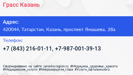Грасс Казань по адресу 420044, Татарстан, Казань, проспект Ямашева, 28а в дальнейшем Организация, размещена в следующих категориях: