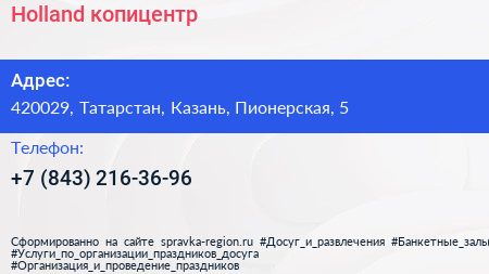 Holland, копицентр по адресу 420029, Татарстан, Казань, Пионерская, 5 в дальнейшем Организация, размещена в следующих категориях:
