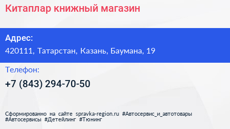 Китаплар, книжный магазин по адресу 420111, Татарстан, Казань, Баумана, 19 в дальнейшем Организация, размещена в следующих категориях: