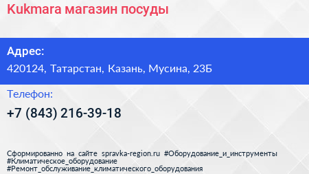 Kukmara, магазин посуды по адресу 420124, Татарстан, Казань, Мусина, 23Б в дальнейшем Организация, размещена в следующих категориях: