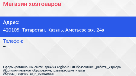 Магазин хозтоваров по адресу 420105, Татарстан, Казань, Аметьевская, 24а в дальнейшем Организация, размещена в следующих категориях: