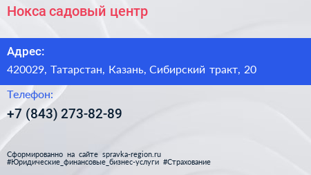 Нокса, садовый центр по адресу 420029, Татарстан, Казань, Сибирский тракт, 20 в дальнейшем Организация, размещена в следующих категориях: