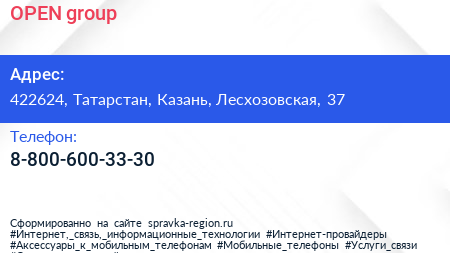 OPEN group по адресу 422624, Татарстан, Казань, Лесхозовская, 37 в дальнейшем Организация, размещена в следующих категориях: