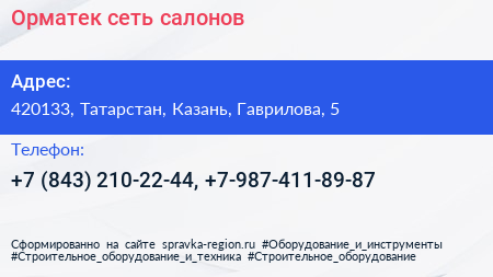 Орматек, сеть салонов по адресу 420133, Татарстан, Казань, Гаврилова, 5 в дальнейшем Организация, размещена в следующих категориях: