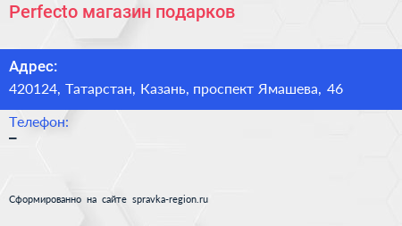 Perfecto, магазин подарков по адресу 420124, Татарстан, Казань, проспект Ямашева, 46 в дальнейшем Организация, размещена в следующих категориях:
