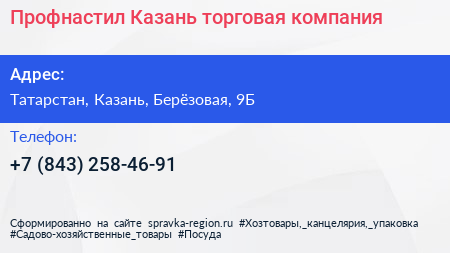 Профнастил-Казань, торговая компания по адресу Татарстан, Казань, Берёзовая, 9Б в дальнейшем Организация, размещена в следующих категориях:
