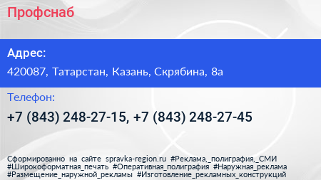 Профснаб по адресу 420087, Татарстан, Казань, Скрябина, 8а в дальнейшем Организация, размещена в следующих категориях: