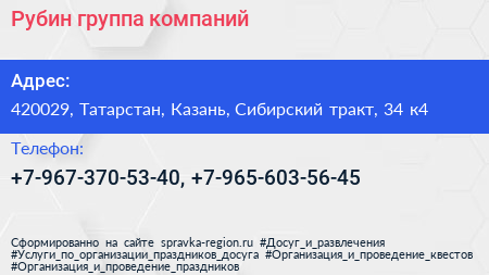 Рубин, группа компаний по адресу 420029, Татарстан, Казань, Сибирский тракт, 34 к4 в дальнейшем Организация, размещена в следующих категориях: