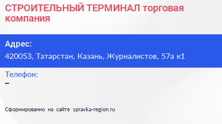 СТРОИТЕЛЬНЫЙ ТЕРМИНАЛ, торговая компания по адресу 420053, Татарстан, Казань, Журналистов, 57а к1 в дальнейшем Организация, размещена в следующих категориях: