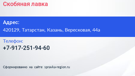 Скобяная лавка по адресу 420129, Татарстан, Казань, Вересковая, 44а в дальнейшем Организация, размещена в следующих категориях: