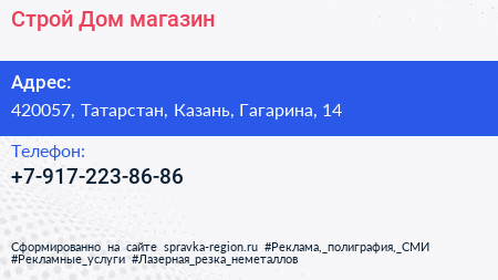Строй Дом, магазин по адресу 420057, Татарстан, Казань, Гагарина, 14 в дальнейшем Организация, размещена в следующих категориях:
