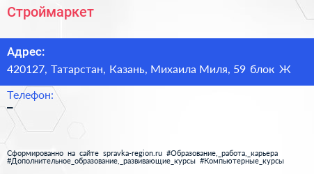 Строймаркет по адресу 420127, Татарстан, Казань, Михаила Миля, 59 блок Ж в дальнейшем Организация, размещена в следующих категориях: