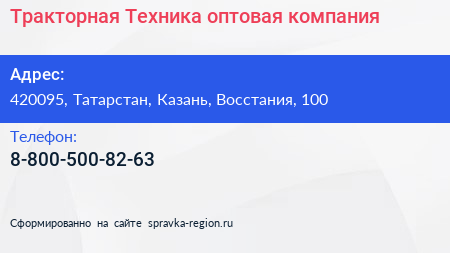 Тракторная Техника, оптовая компания по адресу 420095, Татарстан, Казань, Восстания, 100 в дальнейшем Организация, размещена в следующих категориях: