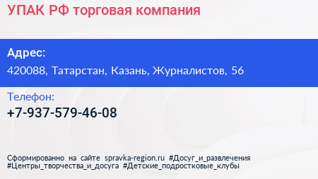 УПАК.РФ, торговая компания по адресу 420088, Татарстан, Казань, Журналистов, 56 в дальнейшем Организация, размещена в следующих категориях: