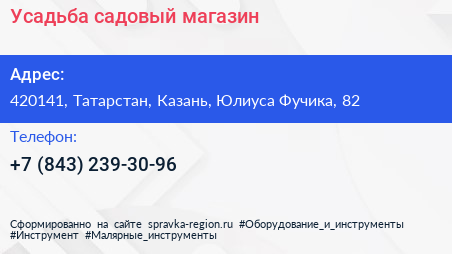 Усадьба, садовый магазин по адресу 420141, Татарстан, Казань, Юлиуса Фучика, 82 в дальнейшем Организация, размещена в следующих категориях: