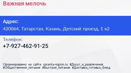 Важная мелочь по адресу 420064, Татарстан, Казань, Детский проезд, 1 к2 в дальнейшем Организация, размещена в следующих категориях: