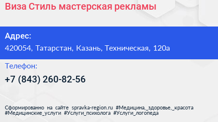 Виза Стиль, мастерская рекламы по адресу 420054, Татарстан, Казань, Техническая, 120а в дальнейшем Организация, размещена в следующих категориях: