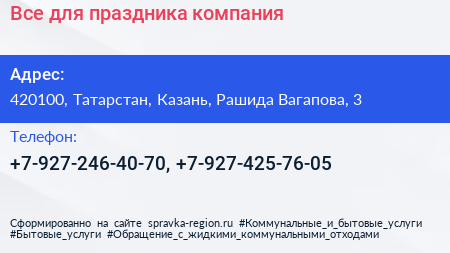 Все для праздника, компания по адресу 420100, Татарстан, Казань, Рашида Вагапова, 3 в дальнейшем Организация, размещена в следующих категориях: