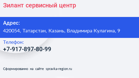 Зилант, сервисный центр по адресу 420054, Татарстан, Казань, Владимира Кулагина, 9 в дальнейшем Организация, размещена в следующих категориях: