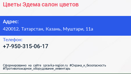 Цветы Эдема, салон цветов по адресу 420012, Татарстан, Казань, Муштари, 11а в дальнейшем Организация, размещена в следующих категориях: