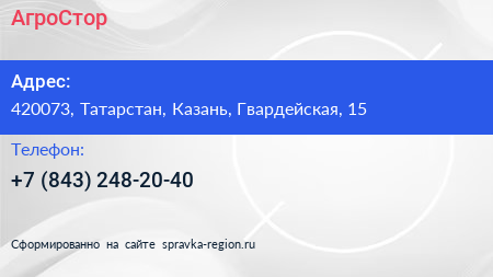 АгроСтор по адресу 420073, Татарстан, Казань, Гвардейская, 15 в дальнейшем Организация, размещена в следующих категориях: