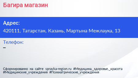 Багира, магазин по адресу 420111, Татарстан, Казань, Мартына Межлаука, 13 в дальнейшем Организация, размещена в следующих категориях: