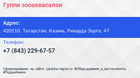 Гуппи, зооаквасалон по адресу 420110, Татарстан, Казань, Рихарда Зорге, 47 в дальнейшем Организация, размещена в следующих категориях: