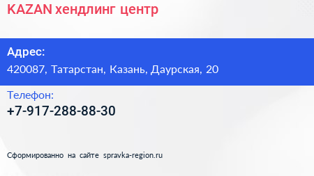 KAZAN, хендлинг-центр по адресу 420087, Татарстан, Казань, Даурская, 20 в дальнейшем Организация, размещена в следующих категориях: