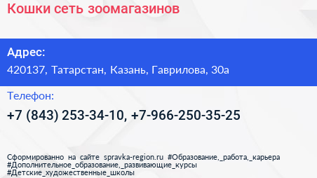Кошки, сеть зоомагазинов по адресу 420137, Татарстан, Казань, Гаврилова, 30а в дальнейшем Организация, размещена в следующих категориях: